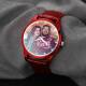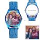 Relógio Gravável Personalizada, Relógio com Foto com Pulseira de Couro Vermelho das Mulheres