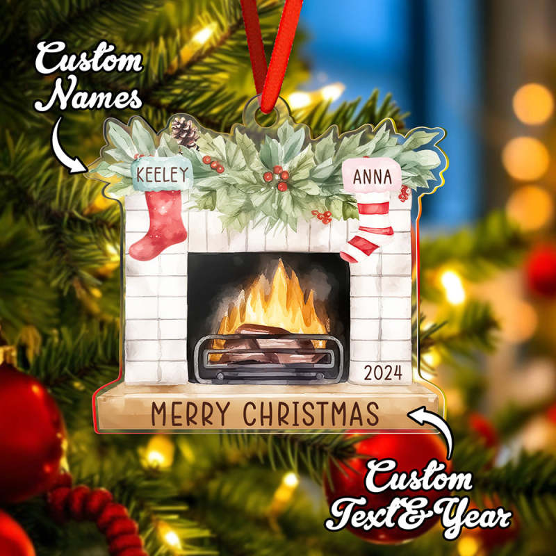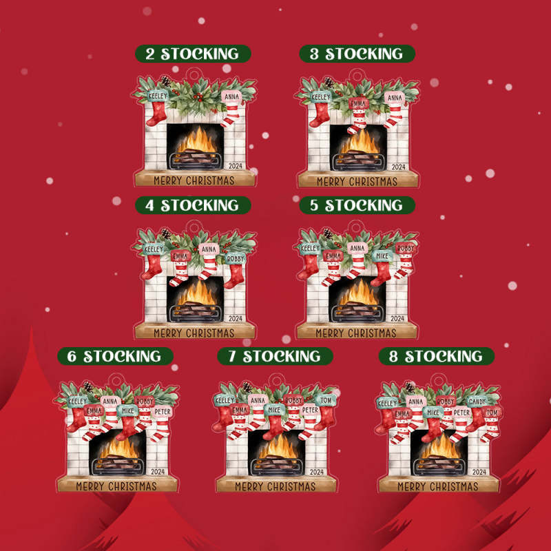Garanta um Natal memorável com este enfeite de Natal familiar personalizado. Feito com meia adornada e design de lareira, este enfeite pode ser personalizado com o nome da sua família para um toque pessoal. Adicione um toque especial à decoração de suas férias e crie uma lembrança duradoura para sua família por muitos anos.