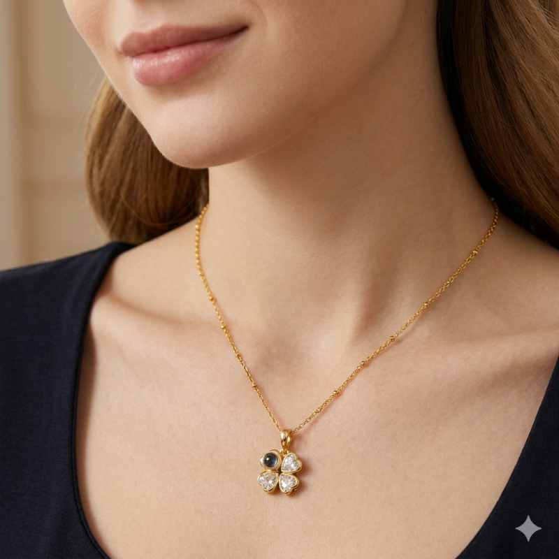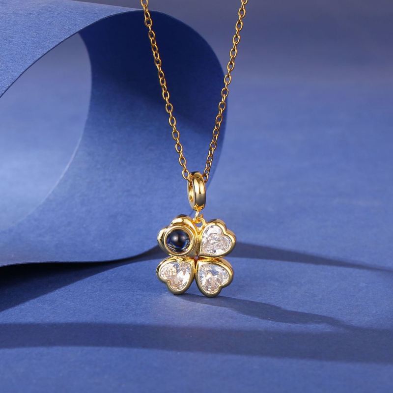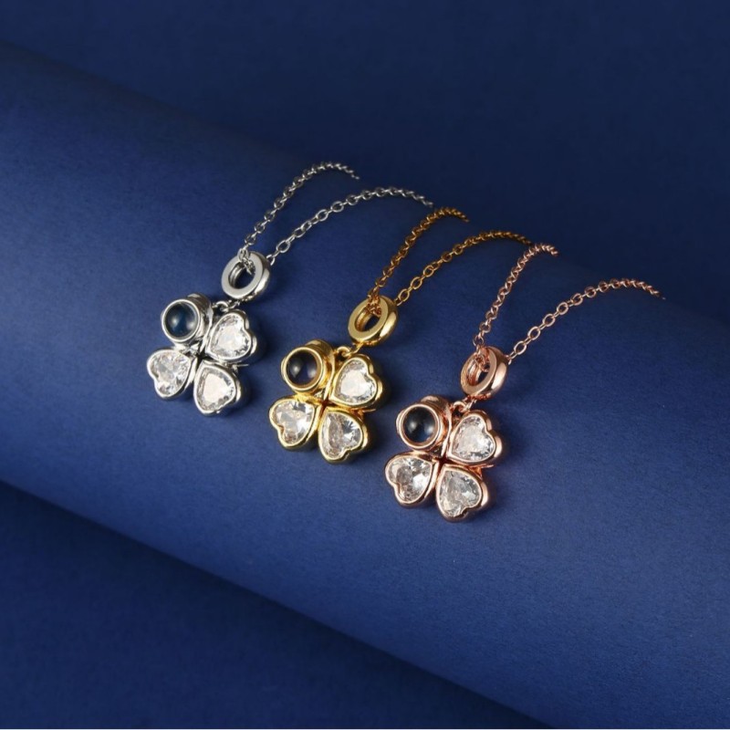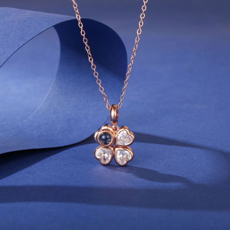 Carregue sua sorte e ganhe dinheiro. Amor: Um símbolo atemporal de boa sorte encontra suas memórias mais preciosas. Este elegante pingente de trevo de quatro folhas apresenta uma pedra de projeção oculta que revela sua foto personalizada quando a luz brilha.