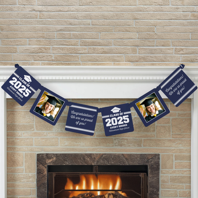 Comemore com estilo com o Banner de Papel Fotográfico Personalizado para Formatura da Classe de Formatura. Este banner é um ótimo complemento para qualquer festa de formatura; vários conjuntos podem ser anexados para uma exibição maior!