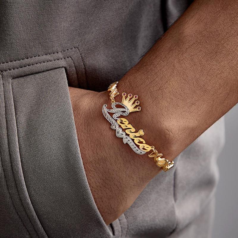 Pulseira Personalizada Com Nome De Hip Hop, Com Coroa, Inicial, Decoração Vermelha, Pulseira, Joias, Presentes Para Homens