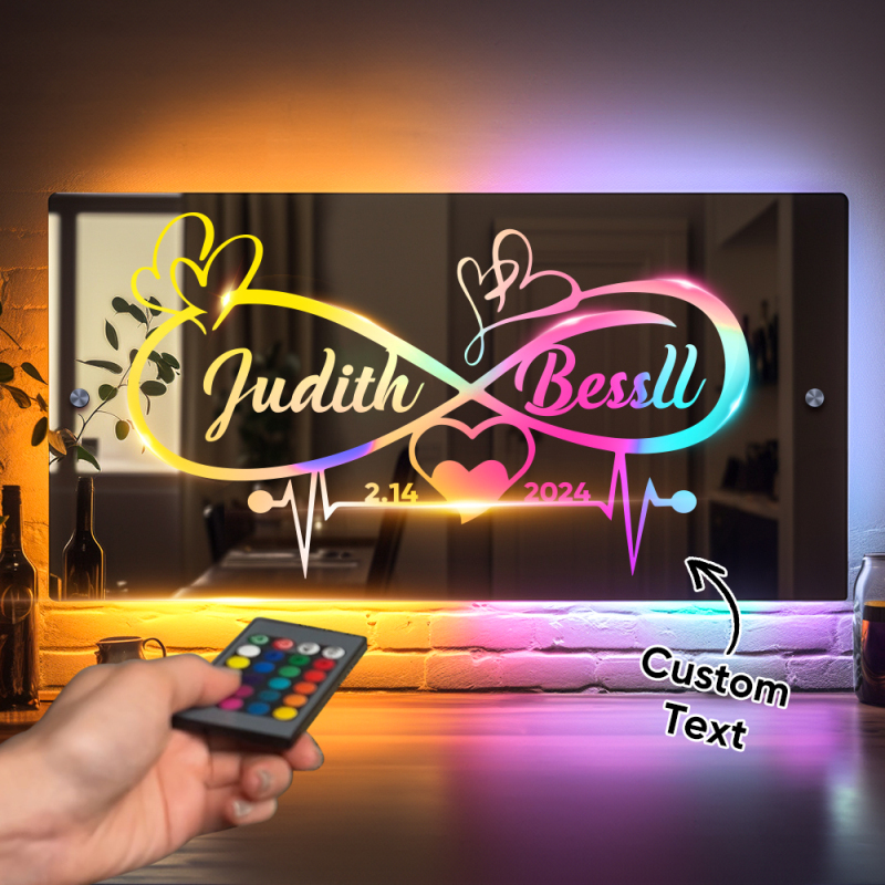 Nome Personalizado Espelho Luz Infinito Coração Casal Presente Espelho Personalizado Sinais De Néon Decoração De Parede, Sinal De Nome Personalizado Para Quarto Presente De Dia Dos Namorados