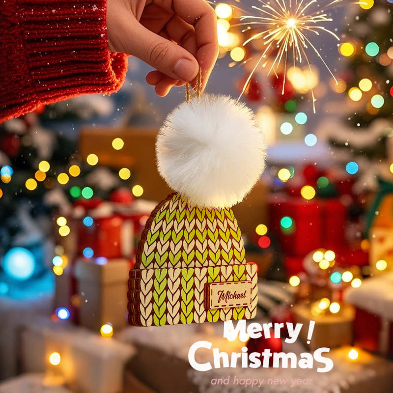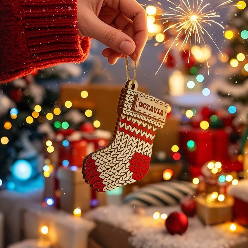 Este enfeite de Natal personalizado é uma adição exclusiva à decoração de suas férias. Feito com gorro de inverno, luva de Natal e suéter de meia, pode ser personalizado com o nome de sua escolha. Perfeito para adicionar um toque pessoal à sua árvore de Natal ou como um presente especial para alguém querido.