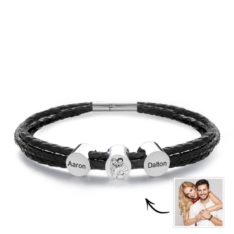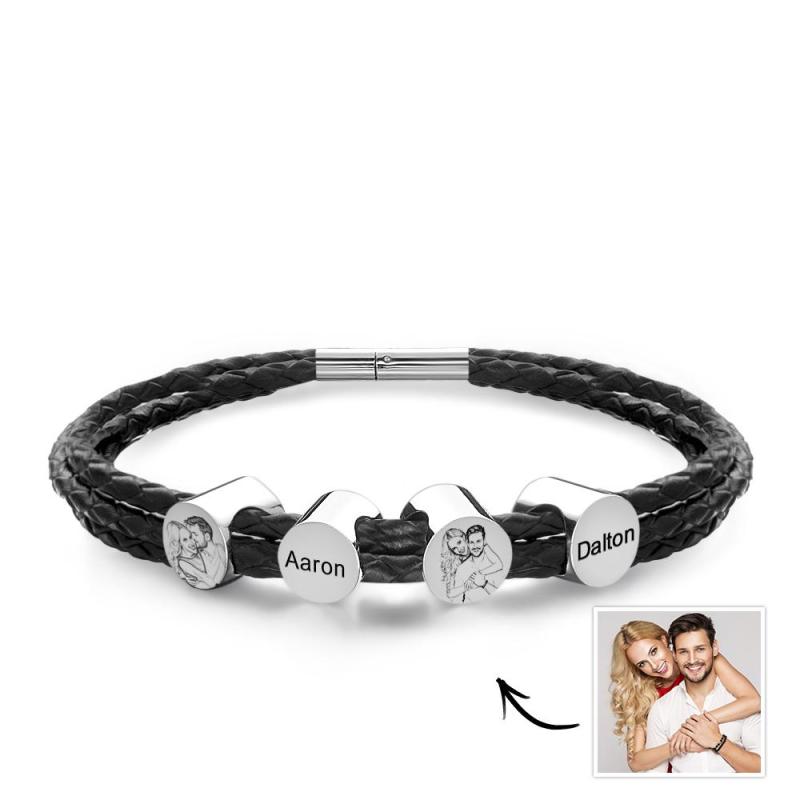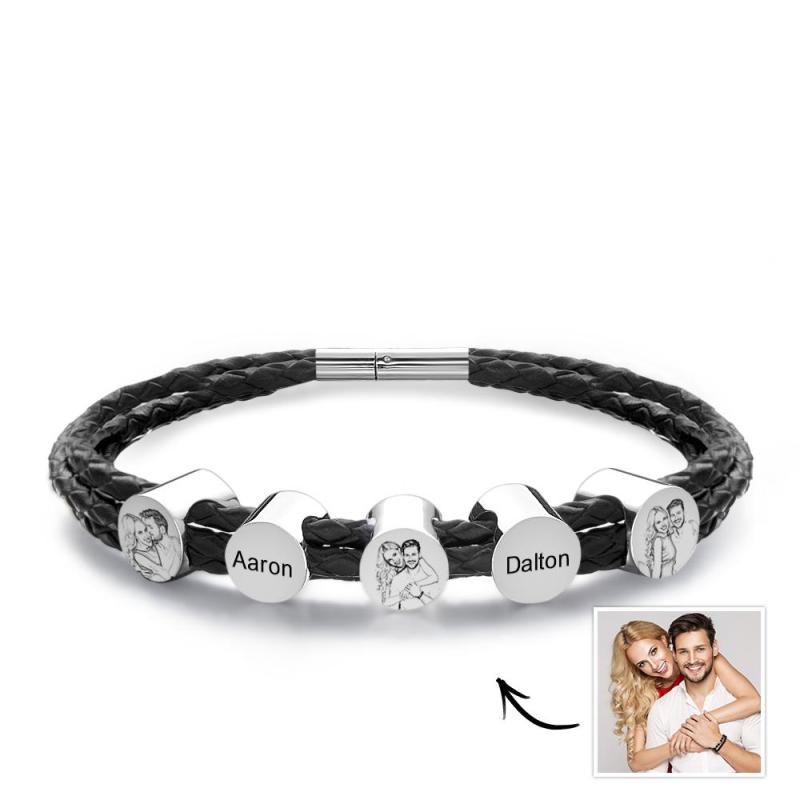 Peça uma para você ou seu pai, amante ou melhor amigo, personalizando-a com seus nomes e fotos para torná-la mais especial e significativa. Esta pulseira de couro multienvoltório com 2 a 6 contas, capacidade de gravar 2 a 6 nomes e adicionar uma foto tem diversas vantagens como presente para um pai. A capacidade de gravar até 6 nomes e adicionar fotos à pulseira a torna um presente altamente personalizado que pode ser personalizado de acordo com o gosto de cada membro da família. Couro de qualidade, esta pulseira foi feita para durar e não quebra ou desgasta facilmente.