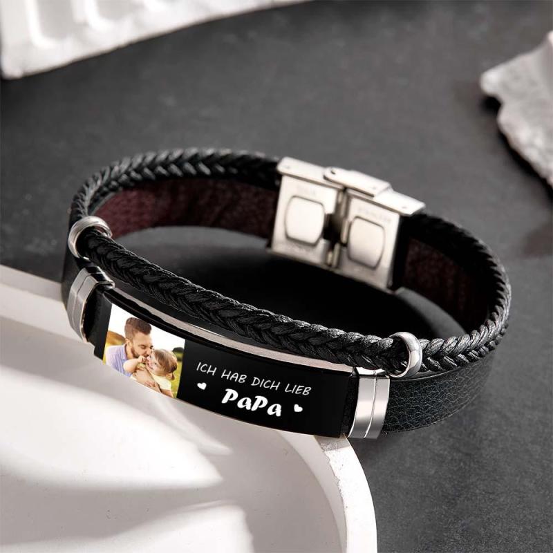 Você está procurando um acessório que seja ao mesmo tempo masculino e que expresse seu estilo pessoal? Nossas pulseiras masculinas com fivela de metal e couro são ideais para você que combina qualidade, estilo e personalização. Não só irá melhorar o seu guarda-roupa diário, mas também se tornará uma memória pessoal que você guardará com carinho. Quer seja um aniversário, aniversário, Dia dos Pais ou Natal, esta pulseira personalizada é um presente atencioso que transmite seus sentimentos.