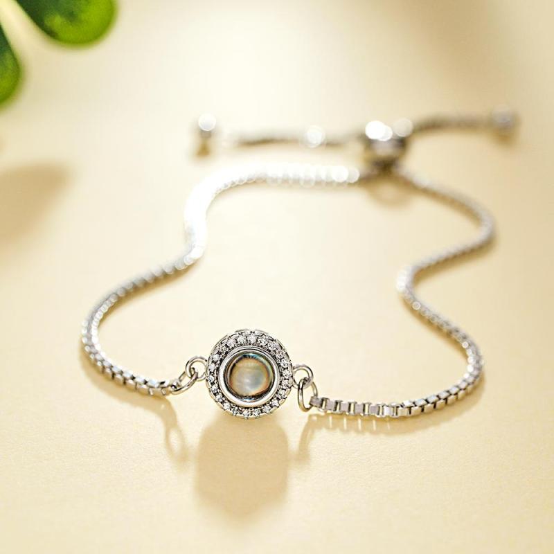 Pulseira De Projeção De Foto Personalizada, Pulseira Redonda De Zircão Ajustável, Presente De Dia Dos Namorados