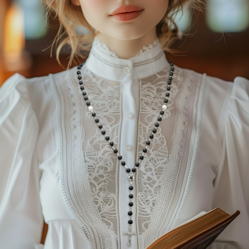 O destaque deste presente memorial é a capacidade de adicionar um toque pessoal incluindo uma foto da pessoa amada. A joia fotográfica de projeção é perfeitamente integrada ao rosário, criando uma lembrança única que permite que familiares e amigos carreguem um lembrete visual de suas memórias mais queridas.