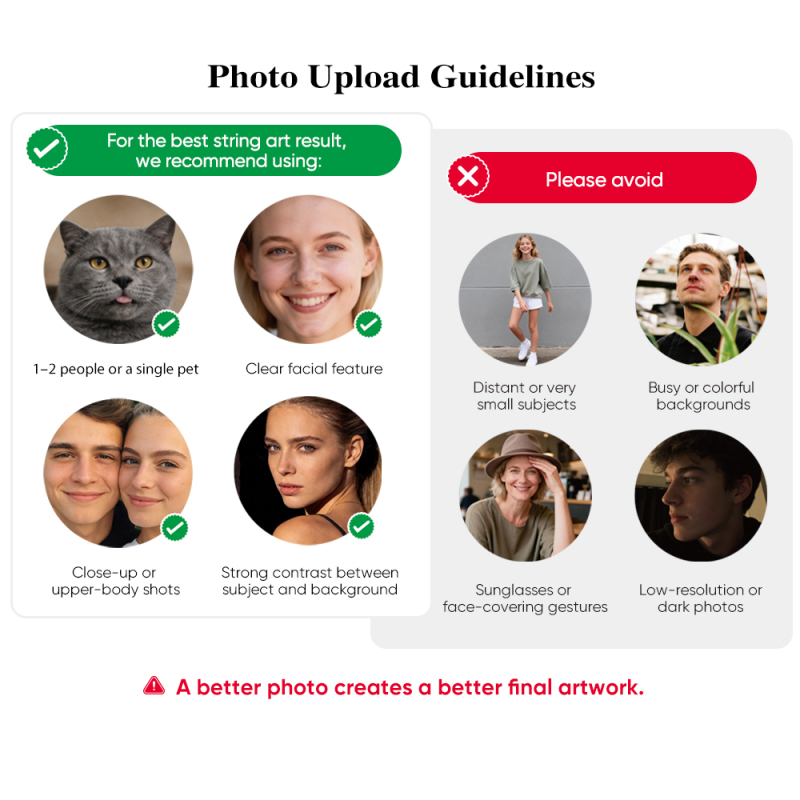 Se sua foto precisar de ajustes, nosso designer irá redesenhá-la uma vez gratuitamente para garantir o melhor resultado possível antes de você começar o DIY.