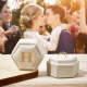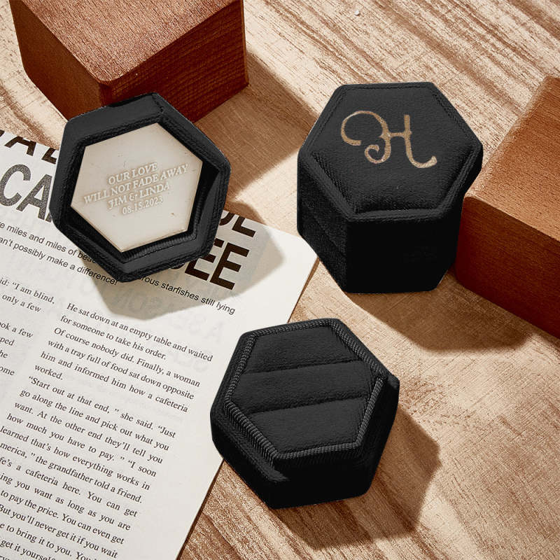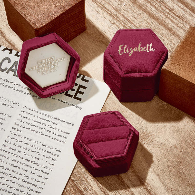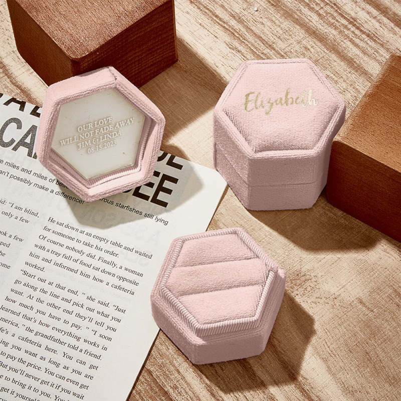 Nossa caixa de anéis é um acessório luxuoso e elegante para armazenar e exibir seus preciosos anéis. Feito com material de alta qualidade, possui textura macia e suave que proporciona amortecimento suave aos seus anéis, evitando arranhões e danos. A caixa de anel adiciona um toque de glamour a qualquer penteadeira ou coleção de joias. Não é apenas uma solução prática de armazenamento, mas também uma bela peça decorativa que mostra a beleza e o valor dos seus anéis.