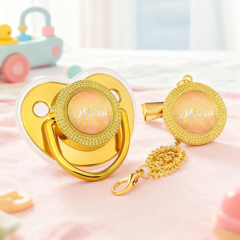 Celebre o mais novo membro da família com um toque personalizado. Nossa chupeta com nome personalizado é cuidadosamente elaborada para incluir o nome do seu bebê, transformando um item essencial do dia a dia em uma lembrança preciosa. Perfeita para chás de bebê ou presentes para recém-nascidos, esta lembrança atenciosa será guardada por muitos anos como uma lembrança significativa de um momento precioso da infância. Segura, estilosa e inesquecível - dê um presente tão único quanto o seu pequeno.