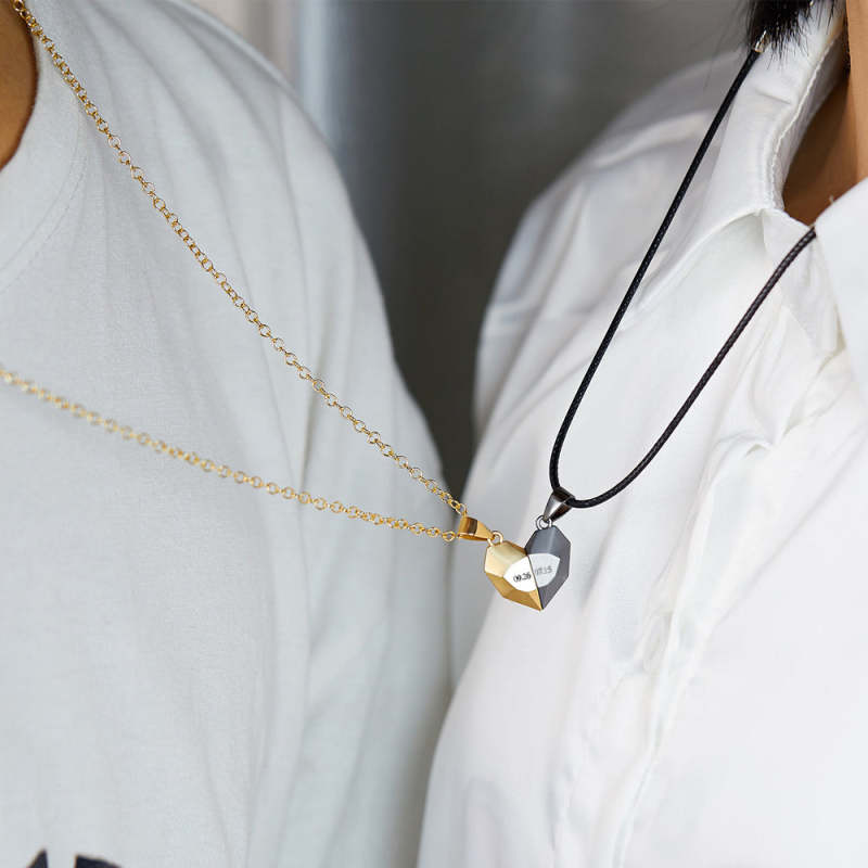 Este colar de casal de promessa eterna vem com um design de pingente magnético que se prende um ao outro branco uma vez usado próximo, representando uma intimidade entre você e seu parceiro!