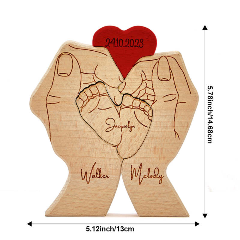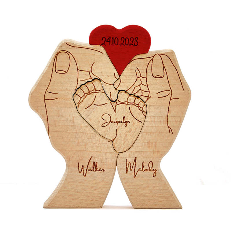 Comemore o vínculo único e as memórias preciosas de sua família com nosso quebra-cabeça de arte personalizado em madeira para pés de bebê, coração e mãos dos pais. Este presente atencioso permite que você exiba os nomes de cada membro da família, criando uma lembrança especial e significativa que celebra a jornada da sua família.