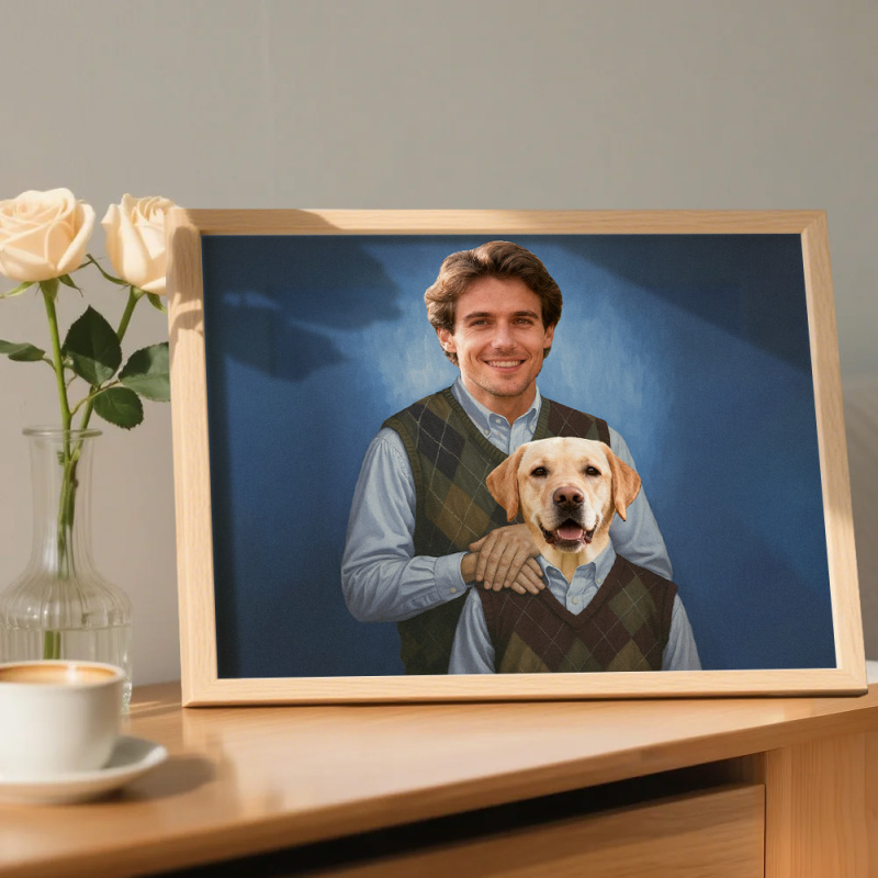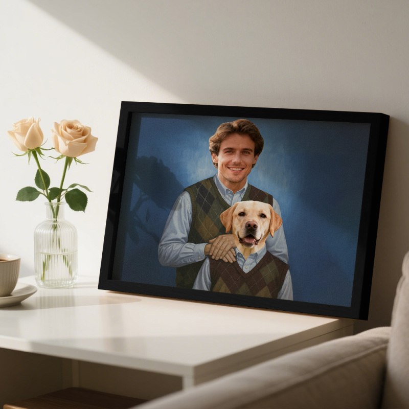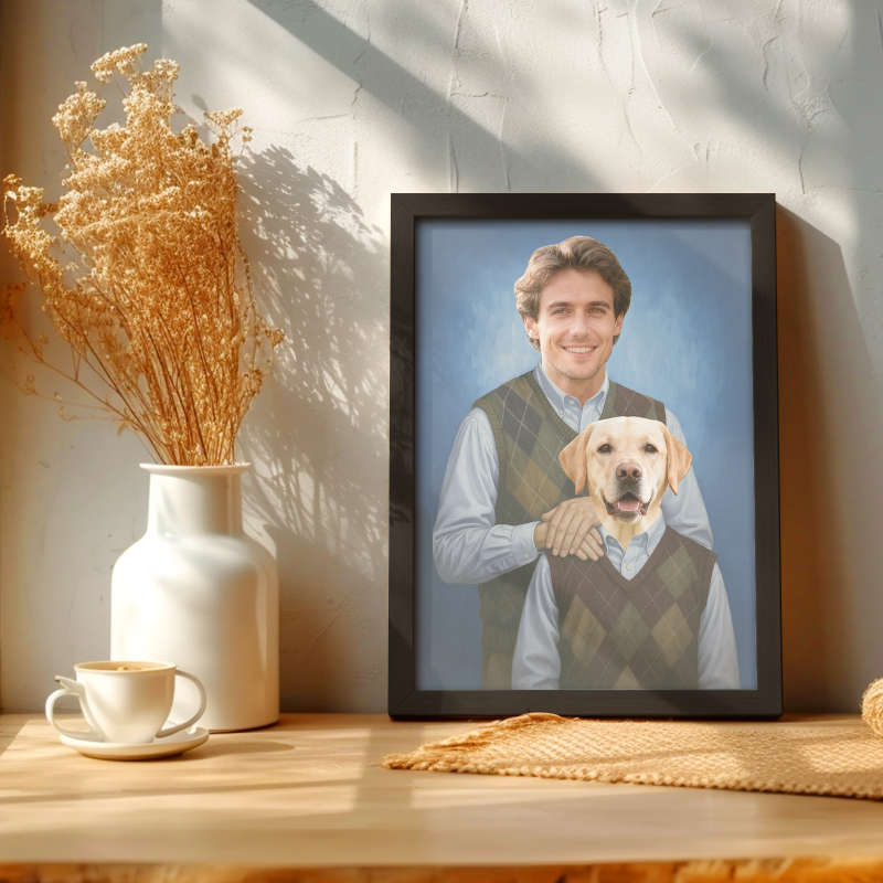Celebre o amor, o riso e a lealdade entre você e seu animal de estimação com este retrato personalizado único!