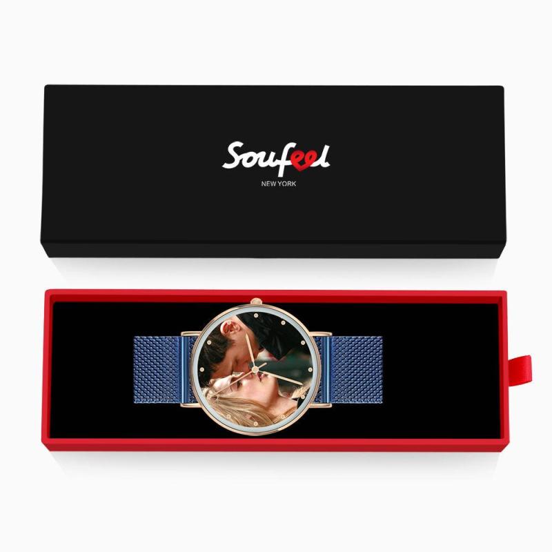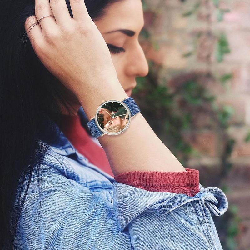 Relógio Grávavel com Foto, Relógio com Foto Personalizado com Pulseira Azul - Mulher