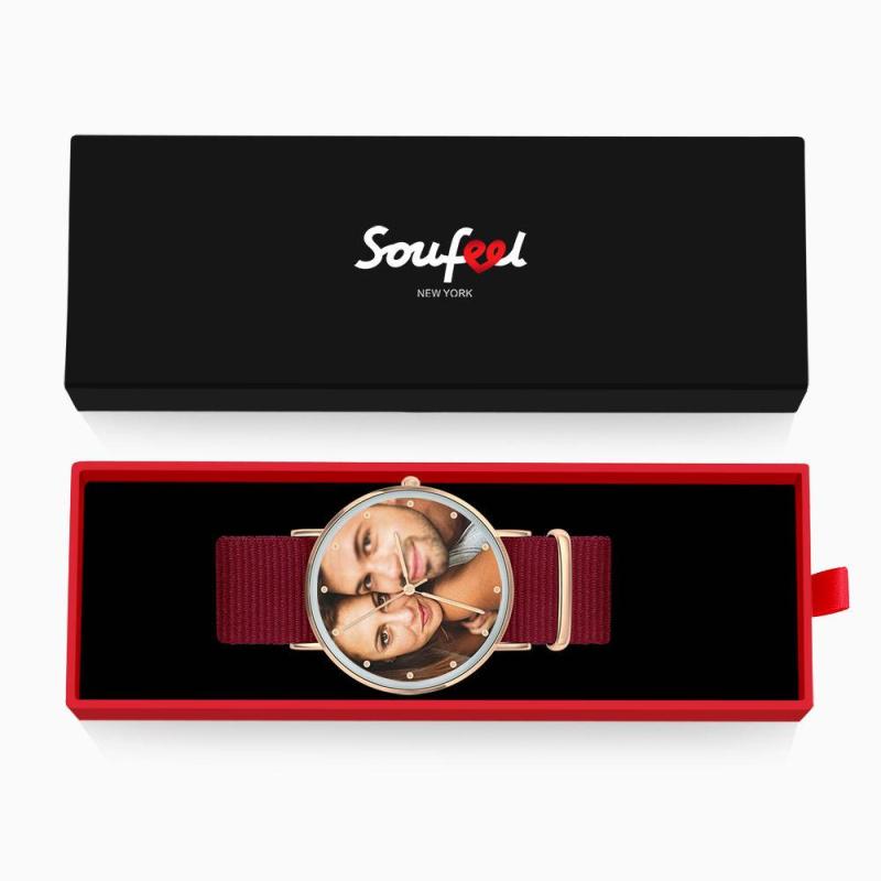 Relógio Grávavel com Foto, Relógio com Foto Personalizado com Pulseira Vermelha Presente de Aniversário - Mulher