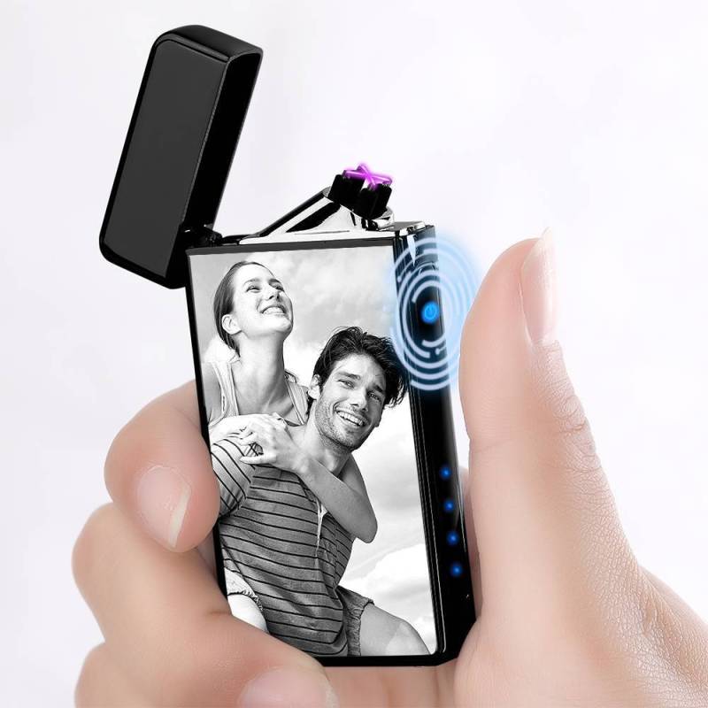Isqueiro com Foto, Isqueiro Preto Gravável com Foto Personalizada Presente do Casal