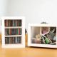 A estante se abre para que você possa organizar os livros como desejar e, caso não goste deles, pode sacudi-los e começar de novo.