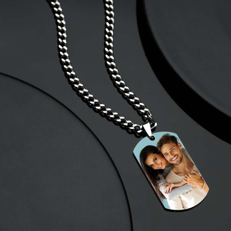Colar De Etiqueta De Foto Masculina Com Gravura Em Aço Inoxidável Presentes Para Namorado