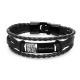 Presentes de joias clássicas masculinas personalizáveis para homens. Pulseira masculina minimalista limpa de couro elegante com gravura. O presente perfeito para pai, filho, namorado, marido. Surpreenda seus entes queridos com um ótimo presente para seu aniversário, Natal, Dia dos Pais ou qualquer outra ocasião. Feito de couro preto de alta qualidade, fecho de aço inoxidável e placa de metal prateado. tocar.