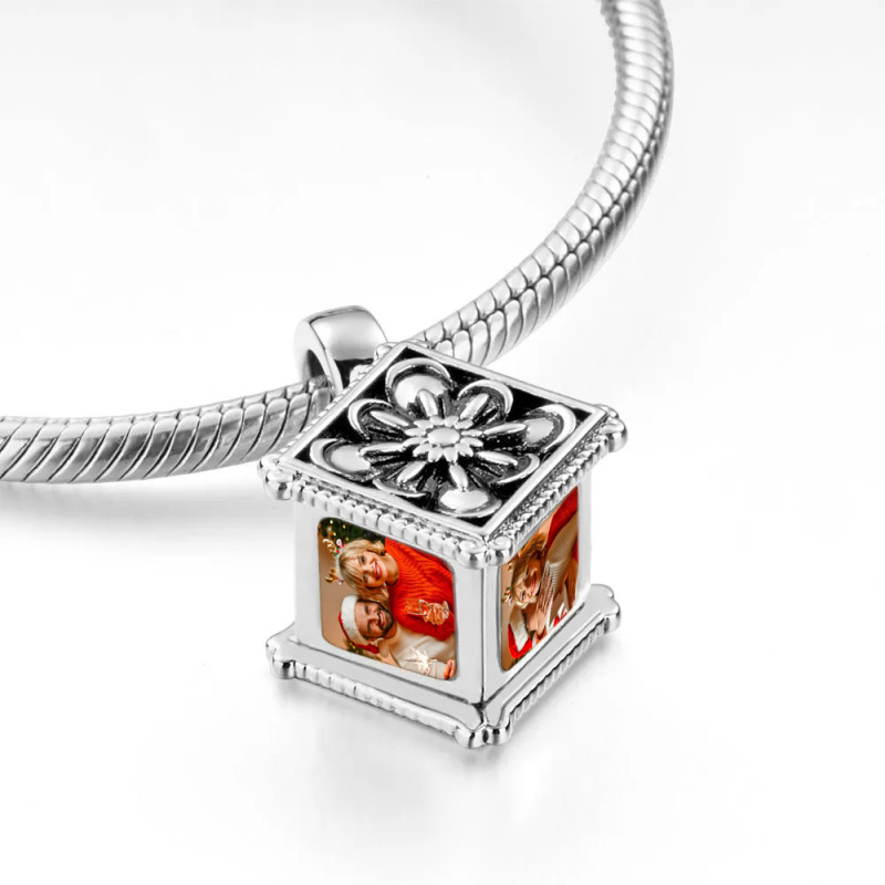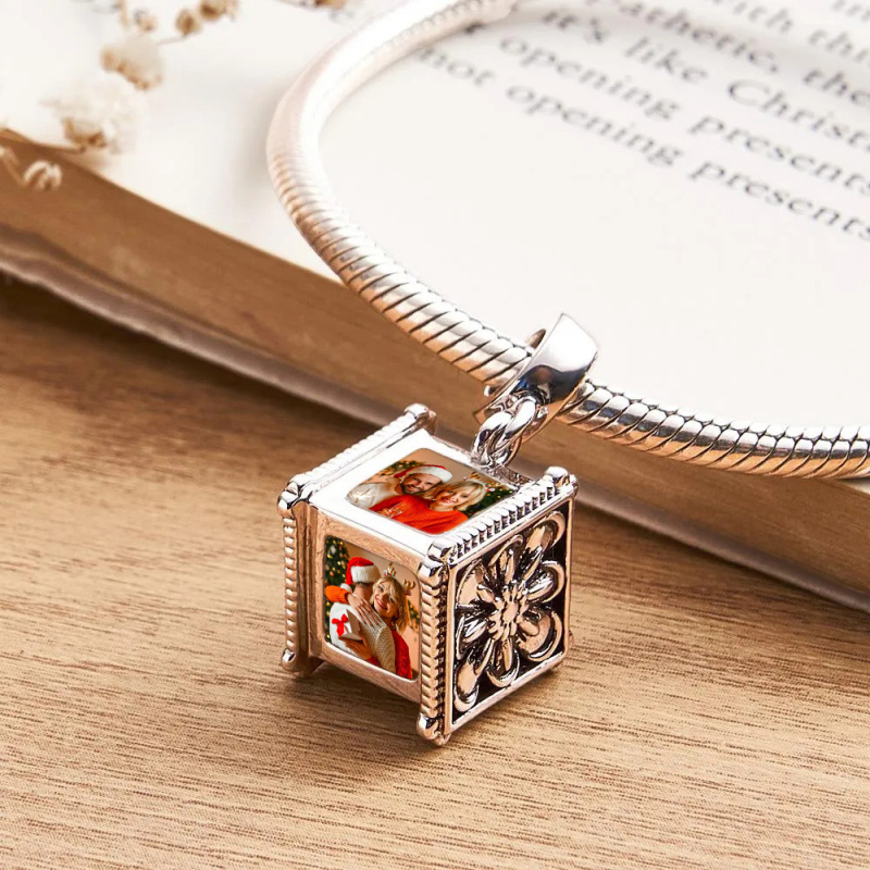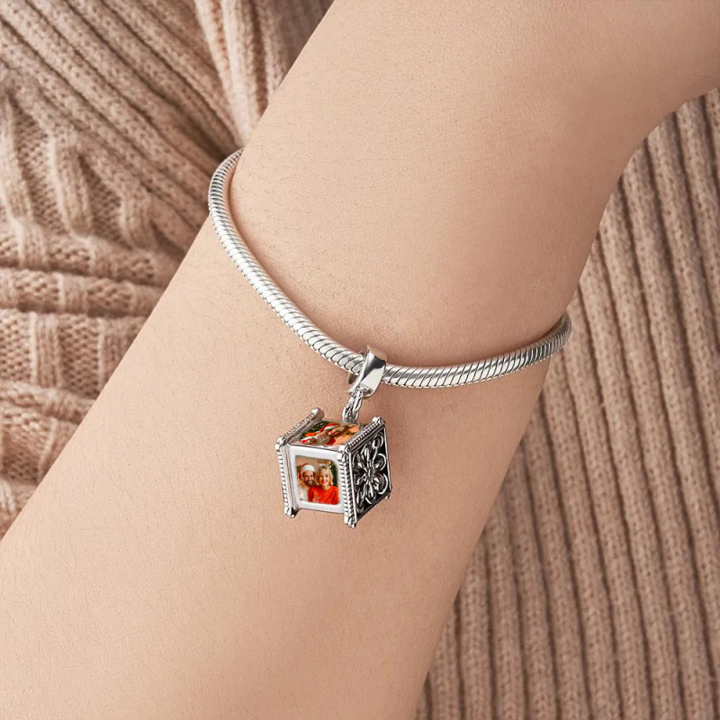 Este pingente com foto personalizada que pode conter 4 fotos, o que torna sua pulseira única e significativa. Tanto a frente quanto o verso são lindamente esculpidos com árvore da vida e mau-olhado.