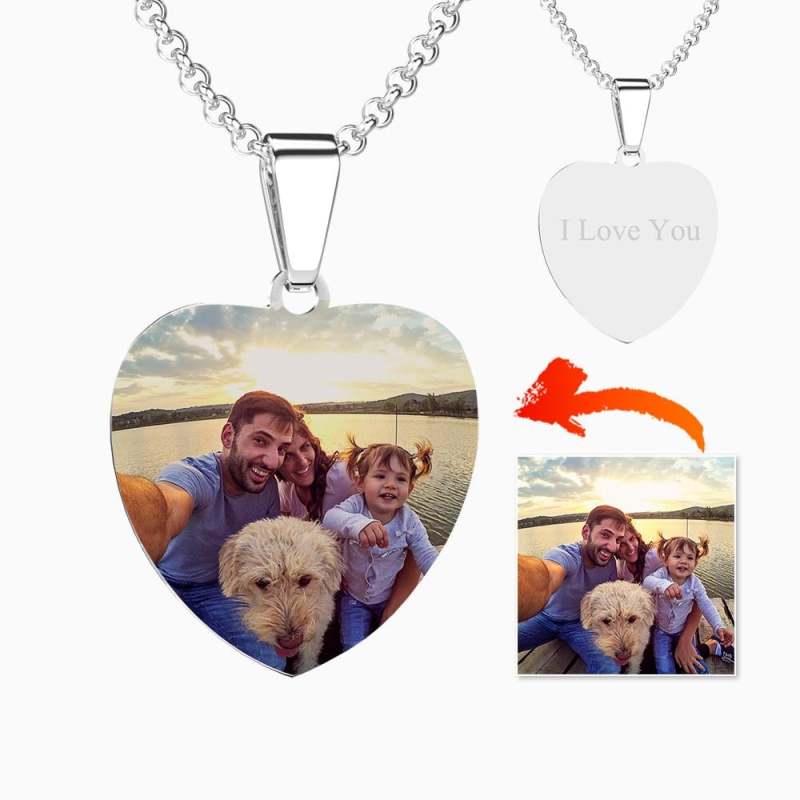Colar De Coração Com Etiqueta De Foto Com Gravura Colares De Foto De Aço Inoxidável