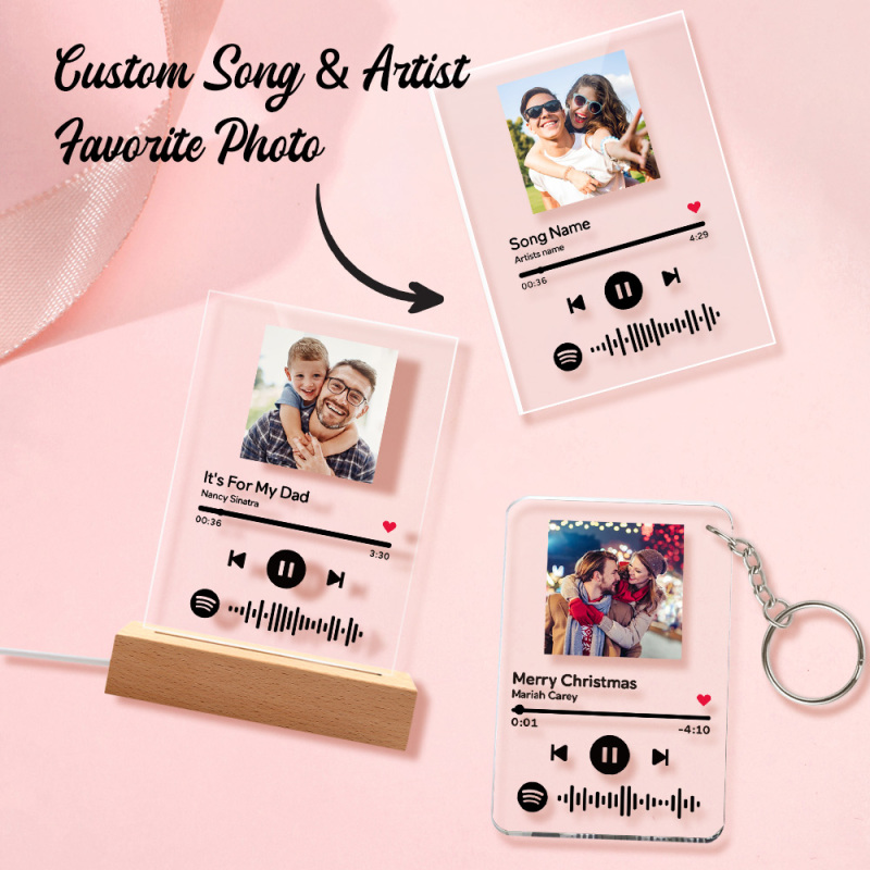 Este chaveiro acrílico exclusivo é o melhor presente perfeito para ele/ela no Natal. Personalize o chaveiro do código Spotify, escolha qualquer título de música, nome do artista e fotos favoritas que você deseja, tudo pode ser impresso na placa de acrílico e você pode gerar um código Spotify exclusivo. Observe que a própria placa de acrílico não emite música. Você precisa escanear o código no aplicativo Spotify, depois de escanear o código no Spotify, sua música começará a tocar imediatamente. No Natal, acredito que este seja o presente mais romântico, toque a música mais bonita para o seu amor.