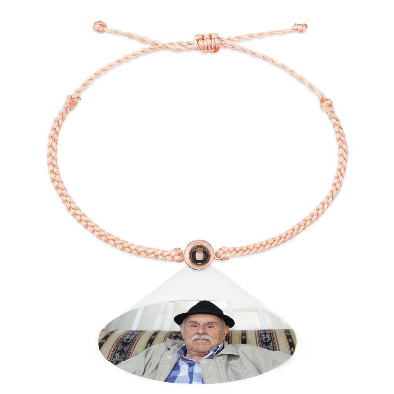 Pulseira de Casal com Projeção de Fotos Personalizada Bracelete de Corda Preta Presente para Pais e Avós