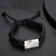 Pulseira Personalizada Masculino Pulseira Gravável com Foto de Etiqueta Retângulo com Pulseira de Couro Preto