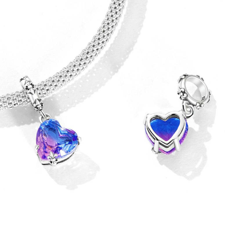 Charme Retro Love Heart Dangle Prata
