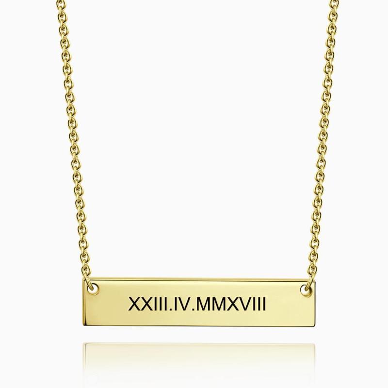 Numeral Romano Colar Gravável de Barra Prata Banhado a Ouro Rosa
