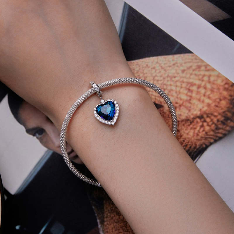 Pendente Pendurado Azul Mar Coração Amor Presentes de prata para ela