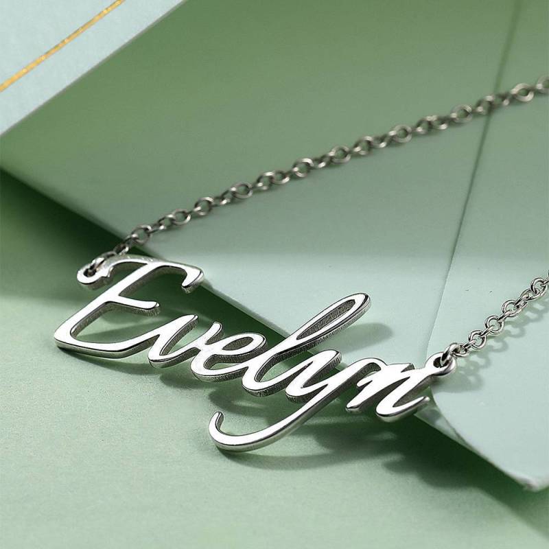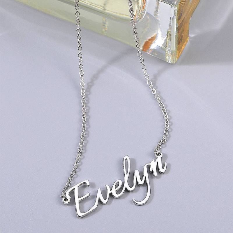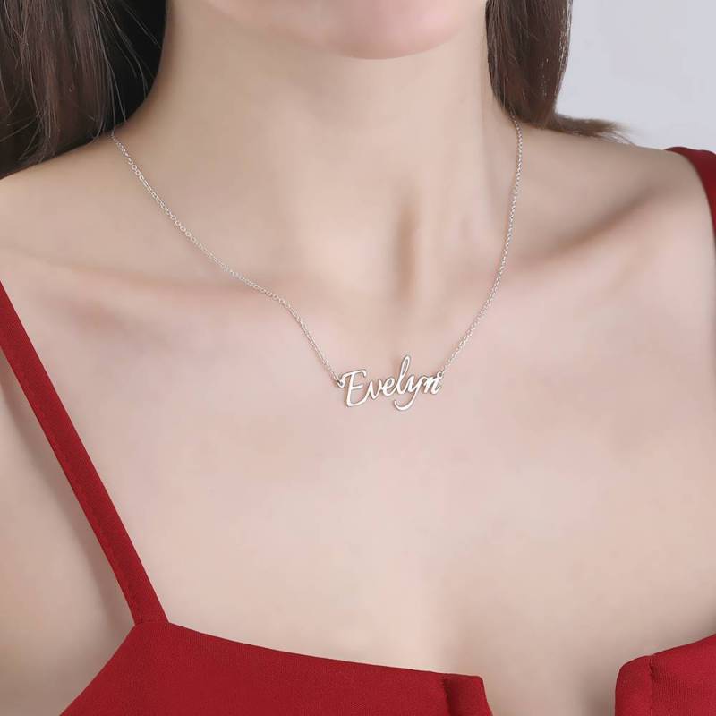 Colar com nome em prata esterlina - Colar com corrente com nome personalizado - Colar com placa com nome - Idéias para presentes de Natal para mulheres