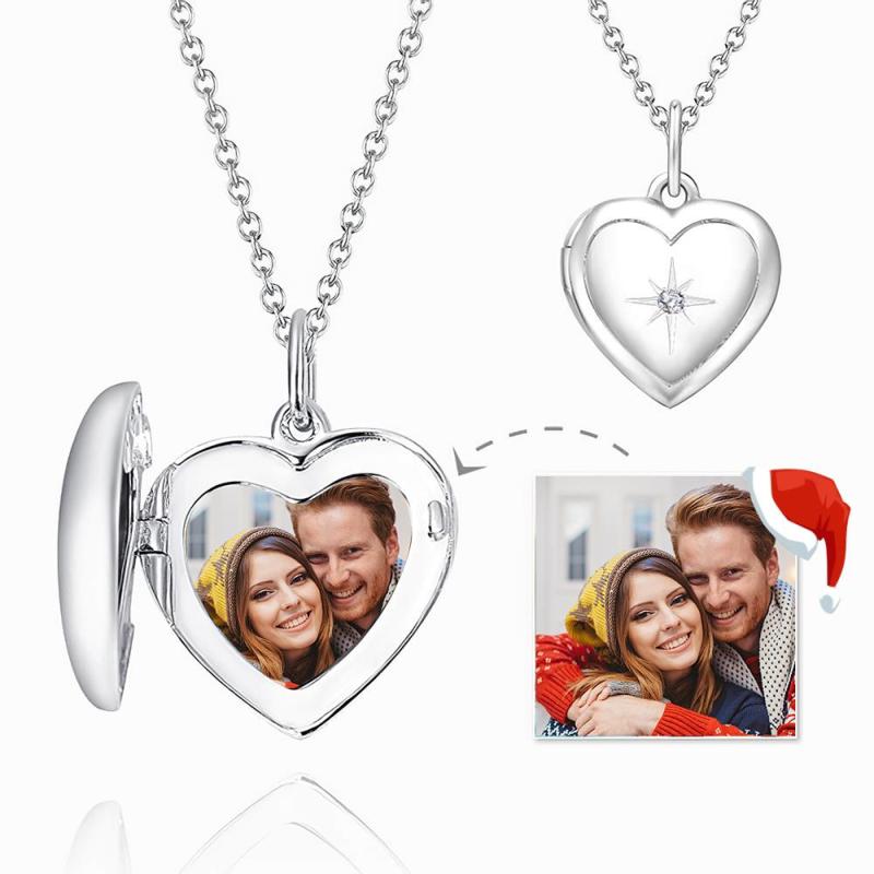 Impressão de Estrela Colar com Medalhão de Foto Banhado a Platina