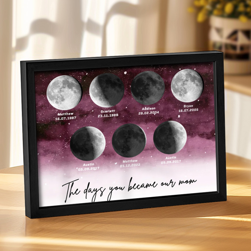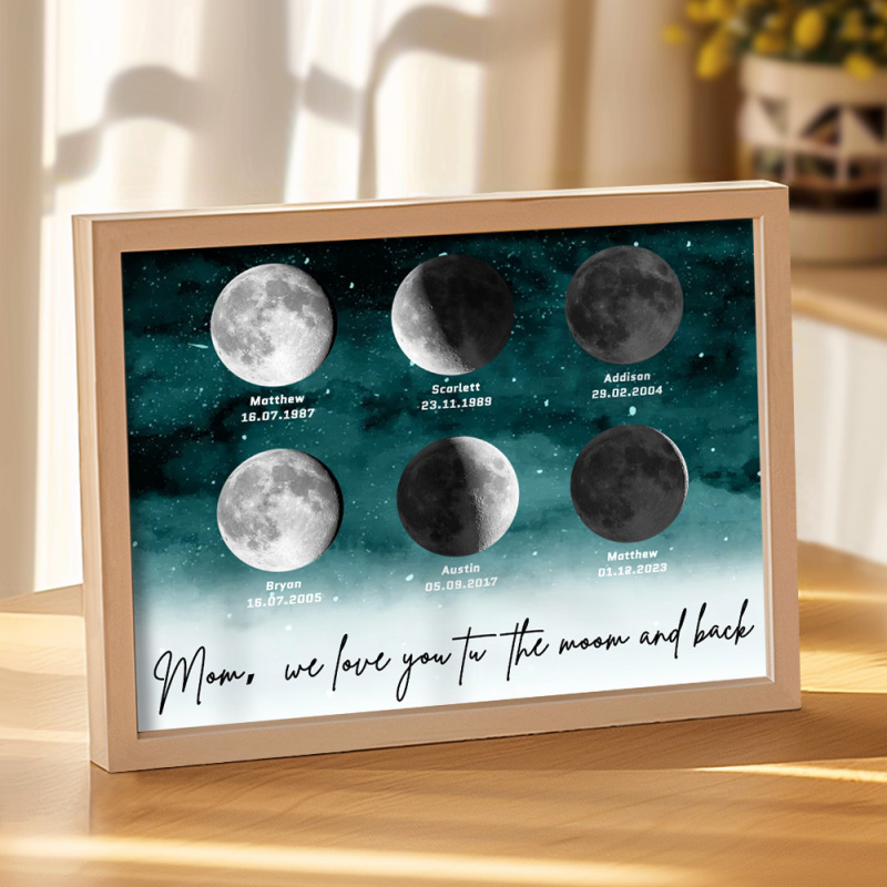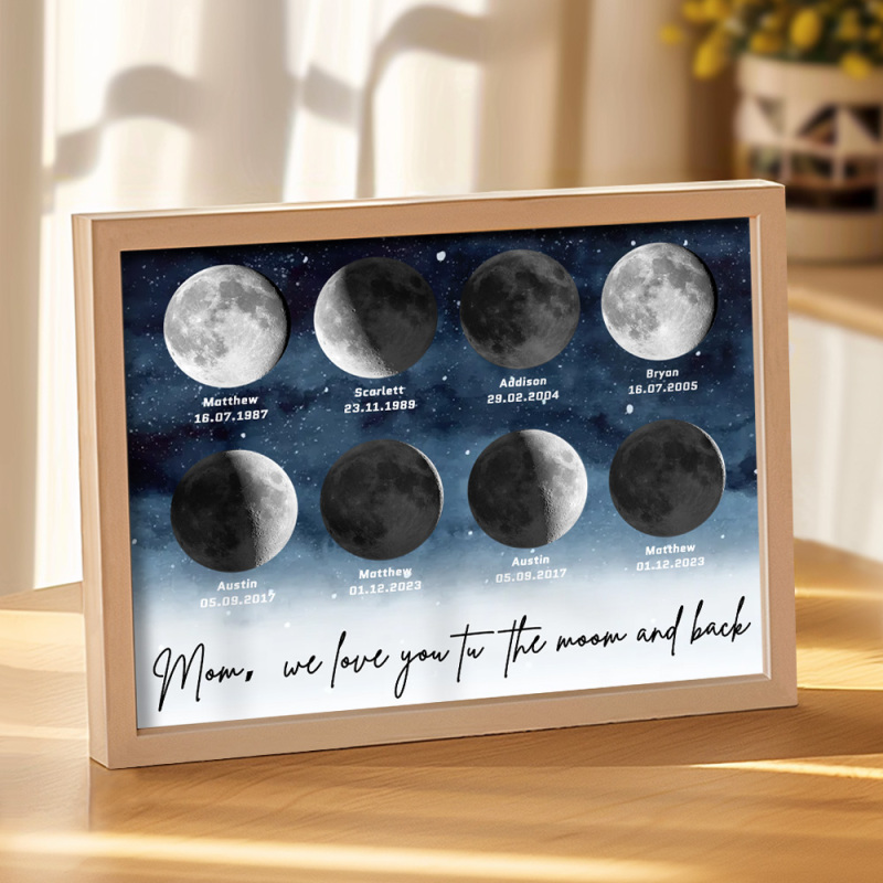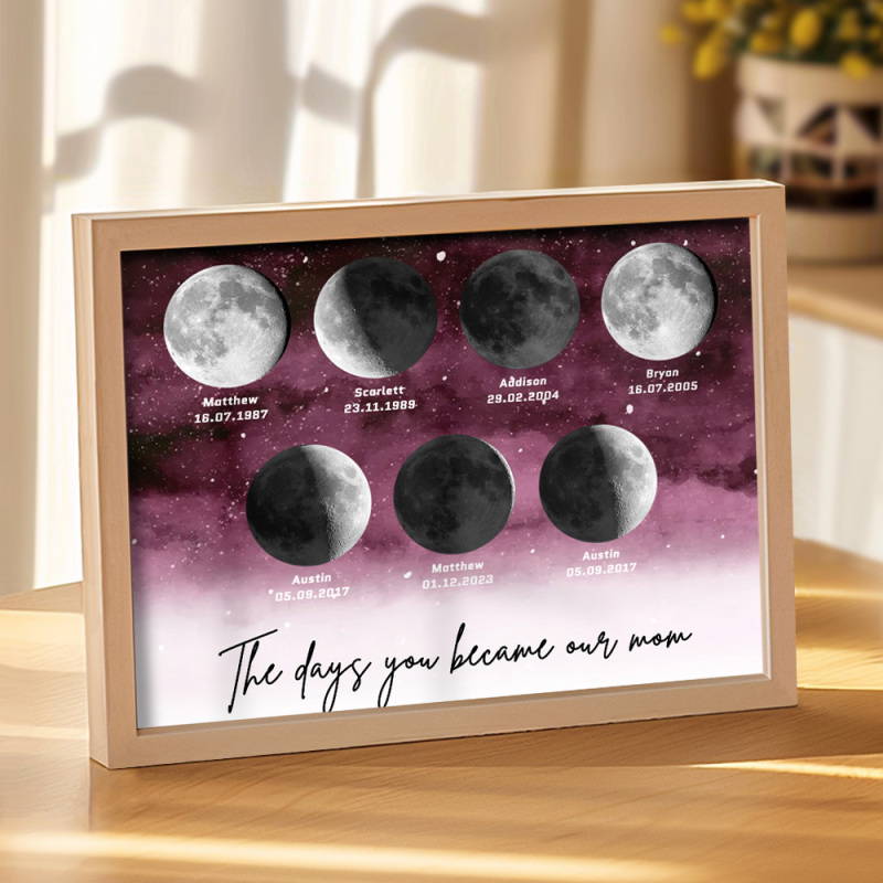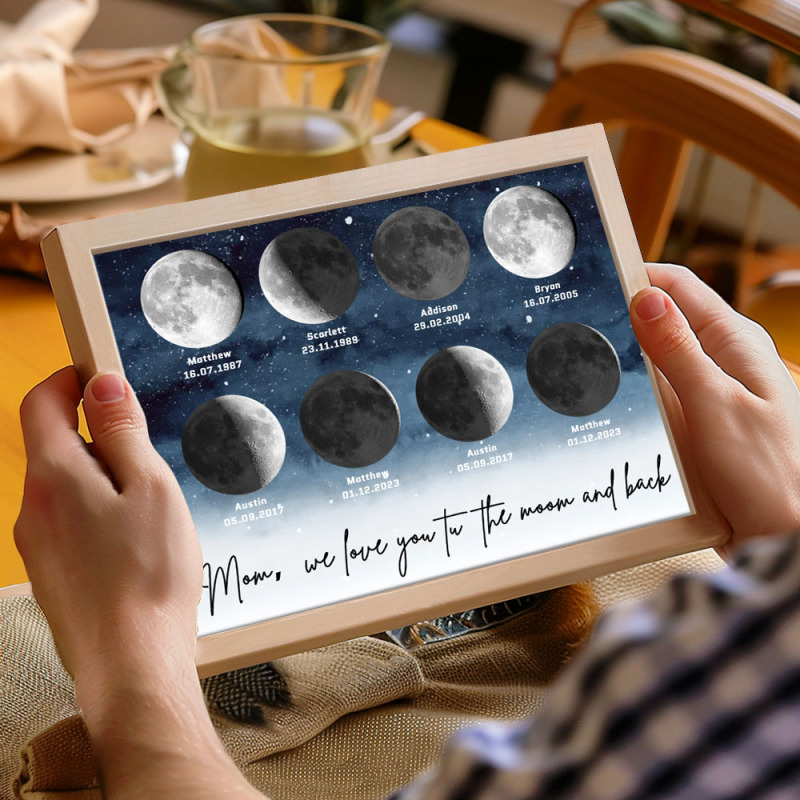 🌙 A maneira perfeita de celebrar o amor incondicional da mamãe no Dia das Mães de 2025, este enfeite personalizado com as fases da lua é lindamente apresentado, criando uma lembrança celestial única para marcar aqueles momentos especiais em que ela se tornou mãe. Com um design elegante e significativo, este pôster é mais do que apenas um item decorativo; será uma lembrança diária do amor profundo, das memórias e do vínculo inquebrável que ela tem com seus filhos. Por que a mamãe vai adorar este presente: