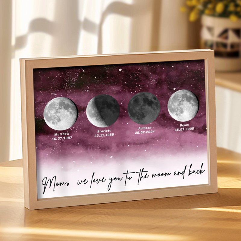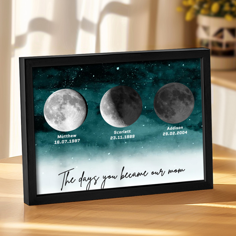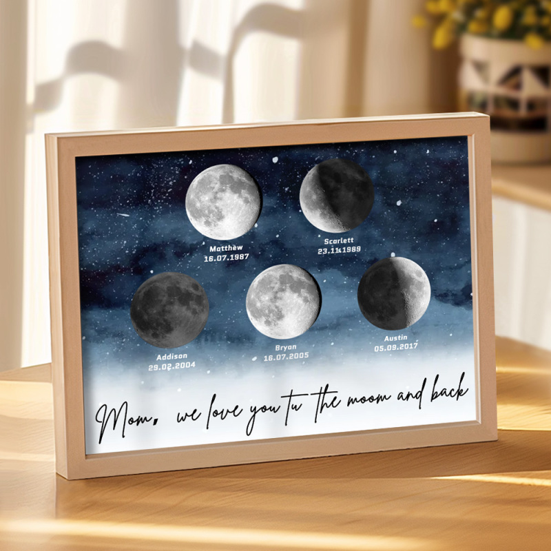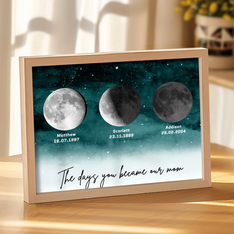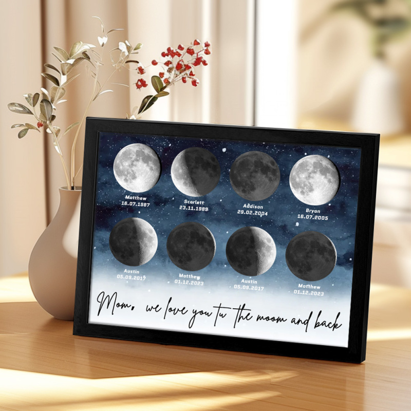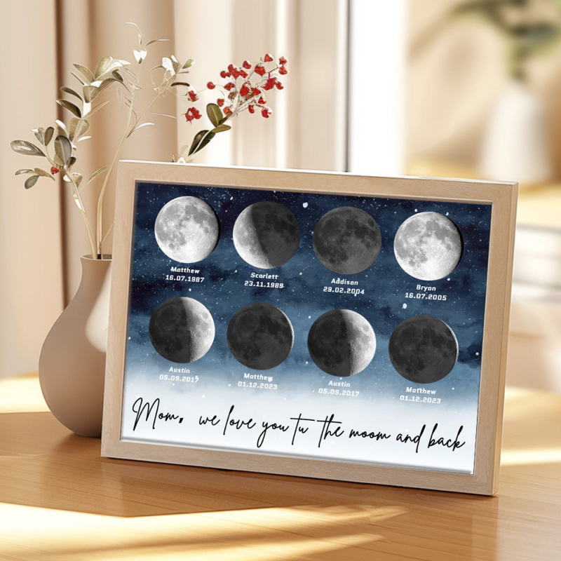 🌙 A maneira perfeita de celebrar o amor incondicional da mamãe no Dia das Mães de 2025, este enfeite personalizado com as fases da lua é lindamente apresentado, criando uma lembrança celestial única para marcar aqueles momentos especiais em que ela se tornou mãe. Com um design elegante e significativo, este pôster é mais do que apenas um item decorativo; será uma lembrança diária do amor profundo, das memórias e do vínculo inquebrável que ela tem com seus filhos. Por que a mamãe vai adorar este presente: