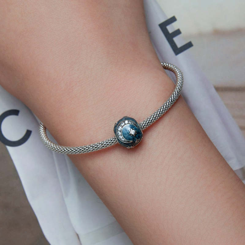 Charme Galáxia Céu Estrelado Azul Fumaça Prata