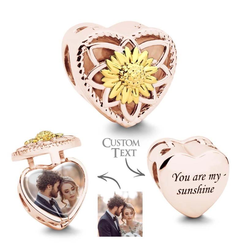 Pingente De Foto De Girassol Em Formato De Coração, Conta De Natal Para Mulheres, Mães, Presente De Dia Dos Namorados