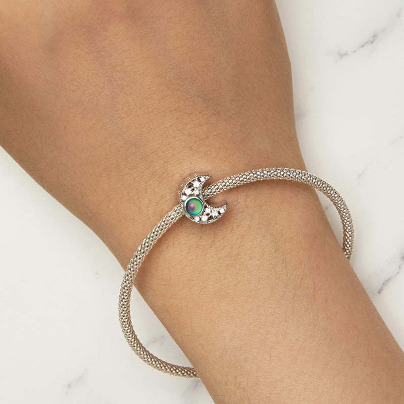 Charme de lua de diamante com descoloração de temperatura prateado