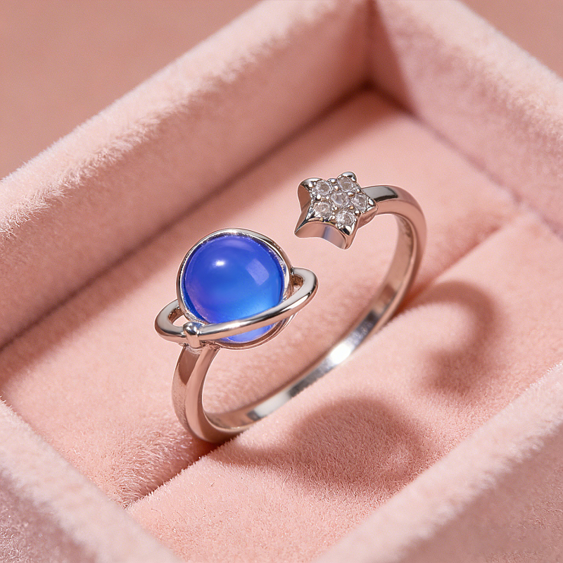 Design com Estrela e Lua: Gira suavemente ao redor do anel, oferecendo uma atividade delicada e relaxante.