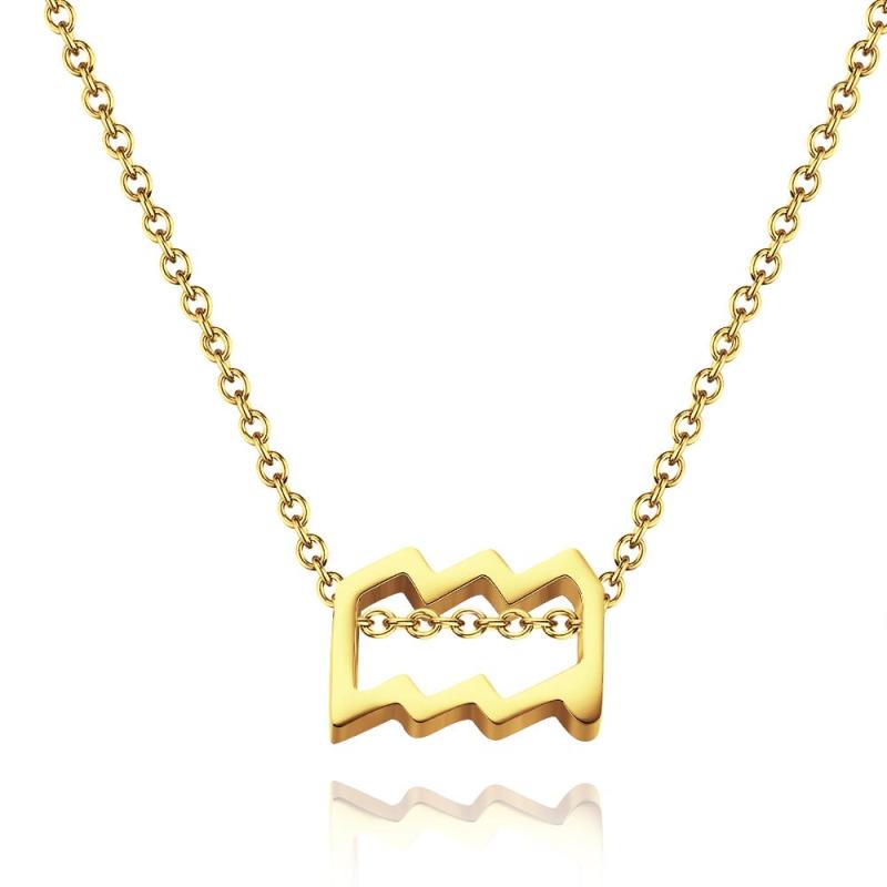 Colar antioxidante de aço inoxidável com doze constelações de Aquário