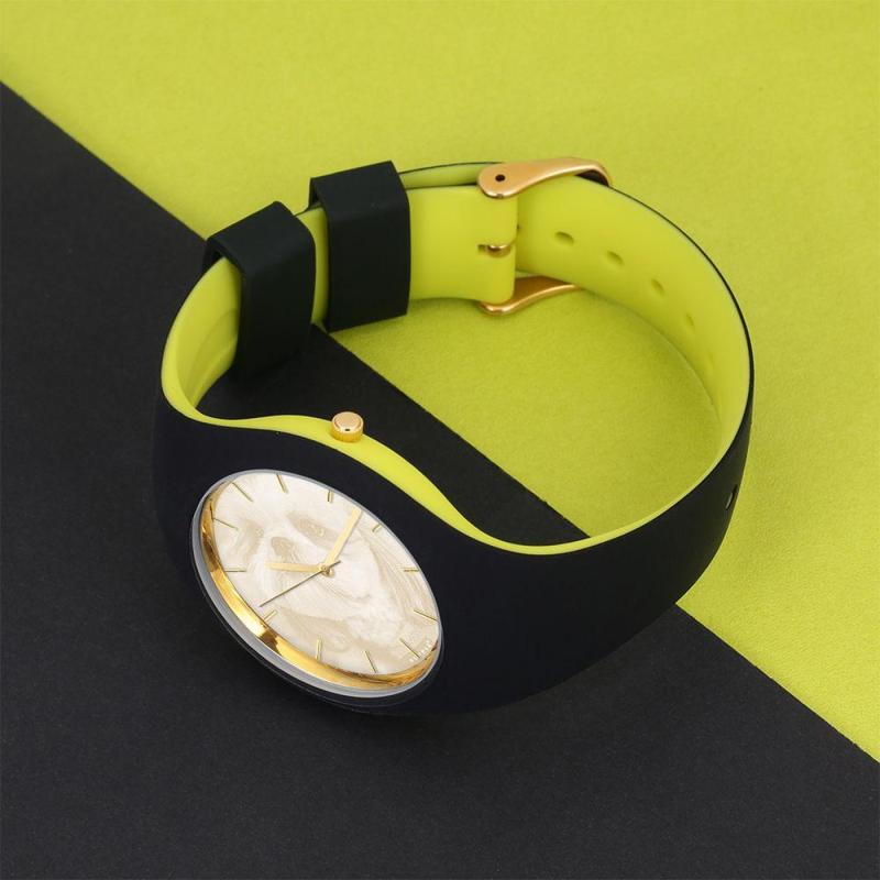 Unissex Silicone Relógio Gravável com Foto 41mm Pulseira Preta e Verde - Dourado