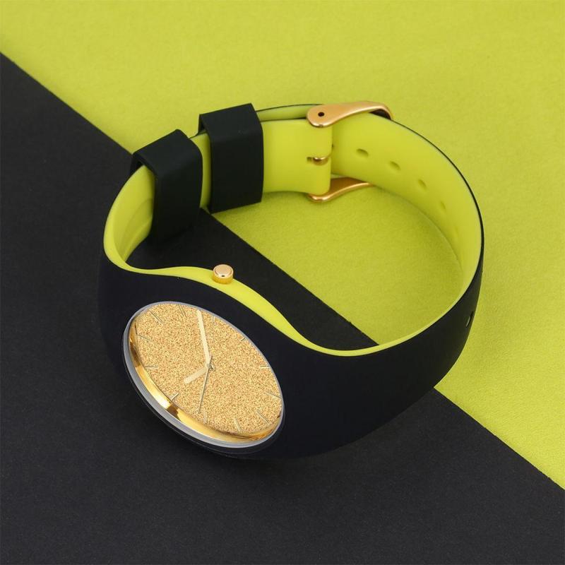 Unissex Silicone Relógio Gravável 41mm Pulseira Preta e Verde - Dourado