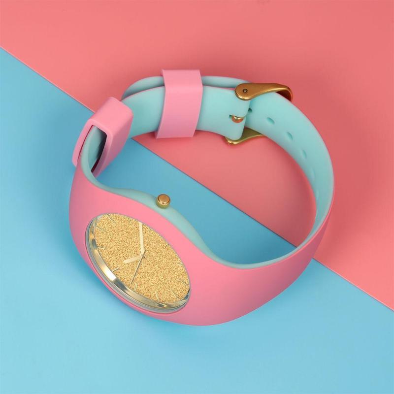 Unissex Silicone Relógio Gravável 41mm Pulseira Rosa e Azul - Dourado