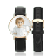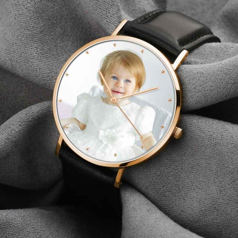 Graváveis Relógio com Foto Tom de Ouro Rosa das Mulheres Pulseira de Couro Preto 36mm
