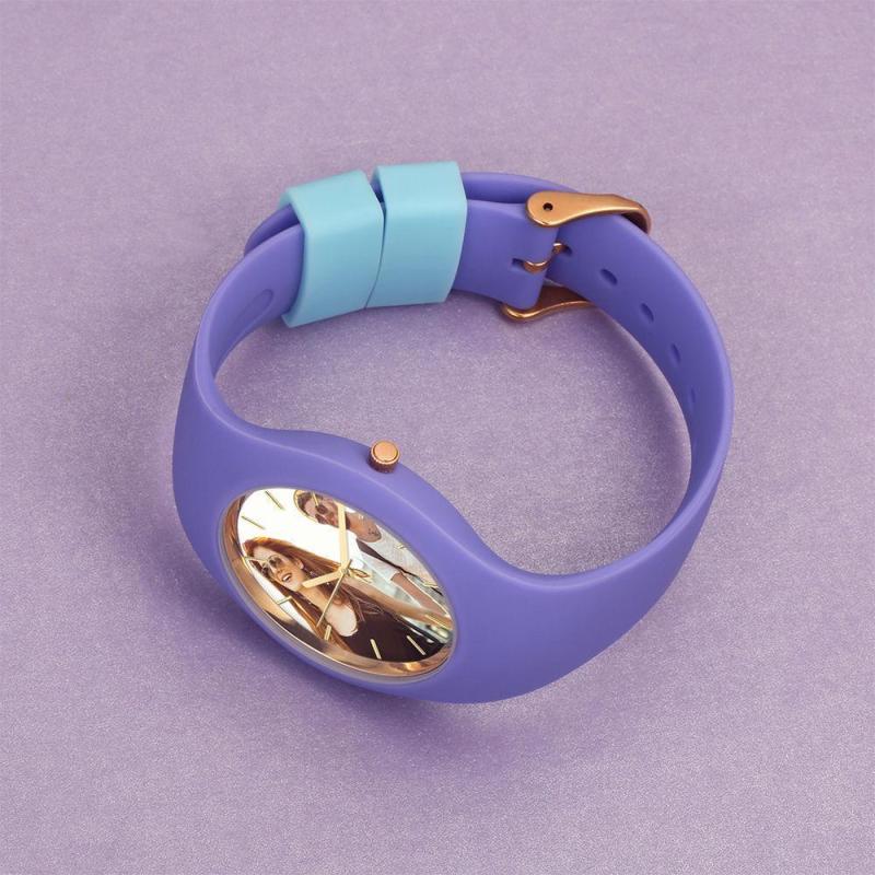 Mulher Silicone Relógio Gravável com Foto 41mm Pulseira Roxa