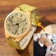Feminino Graváveis Bambu Relógio com Foto Pulseira de Couro Verde Escuro 40mm