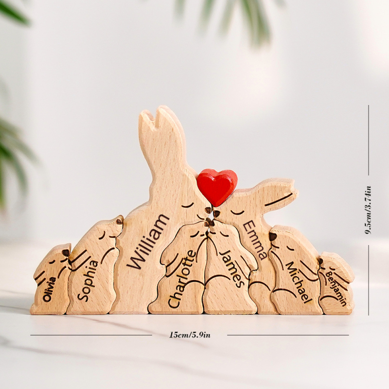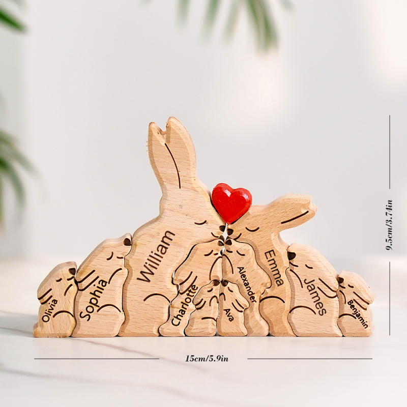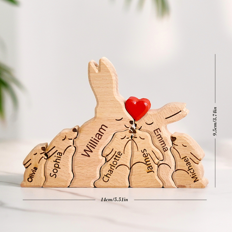 Crie memórias duradouras: O coelho da Família de Madeira não é apenas um quebra-cabeça; é um presente comovente e ecológico, perfeito para qualquer ocasião, seja um aniversário, aniversário ou Natal! Dê à sua família um presente de quebra-cabeça exclusivo no Natal !!! Personalizado só para você: escolha seus familiares e preencha os campos necessários para personalizar os nomes. Com opções disponíveis para 2 a 10 pessoas, você pode adaptá-lo à sua estrutura familiar única. Boa qualidade: nossos quebra-cabeças são feitos com amor, não tóxicos, sem odores, acabamento requintado e design elegante. E embora possam variar ligeiramente em textura e tom de madeira das fotos, cada um é uma peça única de decoração de casa que adicionará calor a seu espaço de vida. Tamanhos: Cerca de 15 cm Espessura: 2 cm Fácil Manutenção: Para manter esta charmosa peça com a melhor aparência, evite usar desinfetantes, água quente ou submergir em água. Basta limpar o produto suavemente com um pano limpo e úmido para preservar sua beleza por muitos anos.